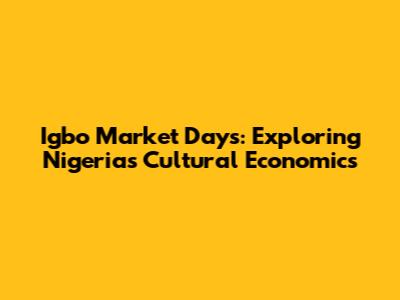 Hey guys! Ever wondered about the bustling heart of Igbo commerce and culture in Nigeria? Well, let's dive into the vibrant world of Igbo Market Days! This isn't just about buying and selling; it’s a fascinating system deeply rooted in tradition, community, and a unique economic rhythm. We're going to explore everything from the names of the market days to their cultural significance and economic impact. So, buckle up and let’s get started on this exciting journey!