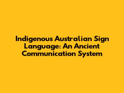 Indigenous Australian Sign Language: An Ancient Communication