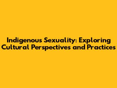 Indigenous Sexuality: Cultural Views & Practices
