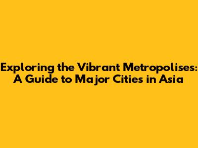 Major Cities In Asia: A Traveler's Guide