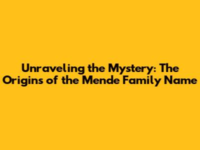 Mende Family Name: Uncover Its Intriguing Origins