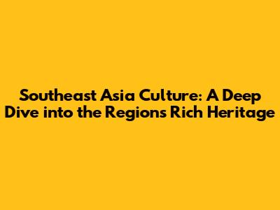 Southeast Asia Culture: Exploring Rich Traditions